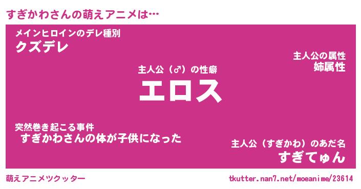 | 男性向けラノベタイトル風あだ名 | 『スギカワアートオンライン』 |