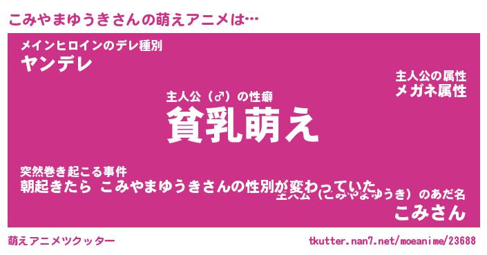 | 女子向けラノベタイトル風あだ名 | 『(仮)こみやまゆうきのやんごとなき事情』 |