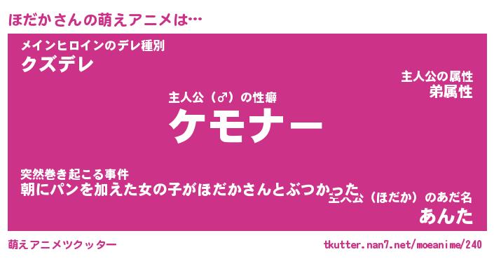 | 2回繰り返すあだ名 | 『ほだほだ』『ほほだだ』『ねばねば』 |
