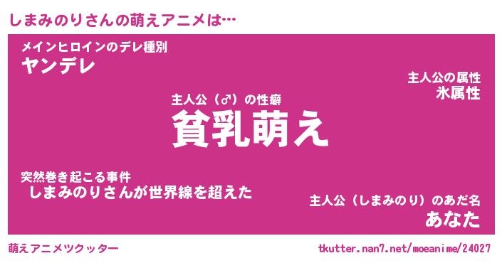 | 女子向けラノベタイトル風あだ名 | 『(仮)しまみのりのやんごとなき事情』 |
