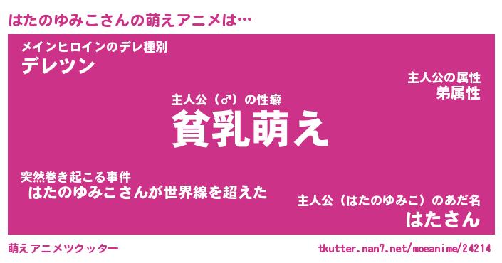| 男性向けラノベタイトル風あだ名 | 『はたのゆみこの憂鬱』 |