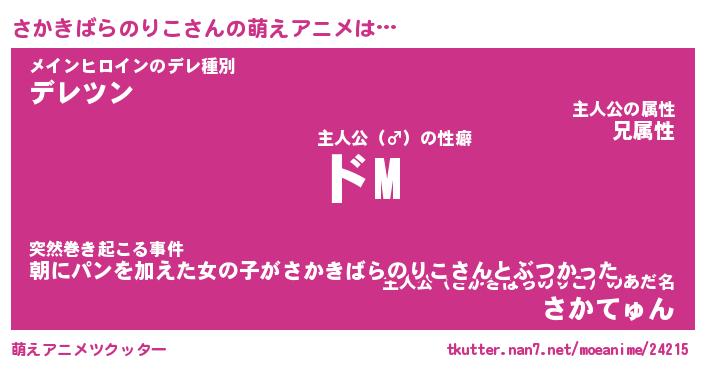 | 男性向けラノベタイトル風あだ名 | 『さかきばらのりこの憂鬱』 |