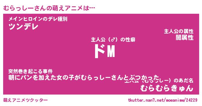 | 女子向けラノベタイトル風あだ名 | 『(仮)むらっしーのやんごとなき事情』 |