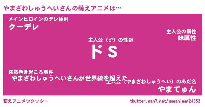 | 女子向けラノベタイトル風あだ名 | 『(仮)やまざわしゅうへいのやんごとなき事情』 |