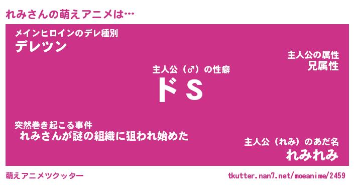 | 男性向けラノベタイトル風あだ名 | 『れみの憂鬱』 |