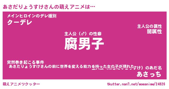 | 女子向けラノベタイトル風あだ名 | 『あさだりょうすけ姫と円卓の騎士』 |