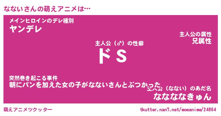 | 男性向けラノベタイトル風あだ名 | 『なないの憂鬱』 |