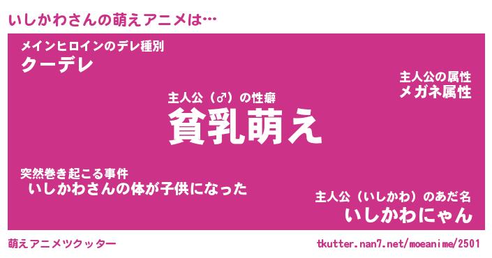 | 女子向けラノベタイトル風あだ名 | 『(仮)いしかわのやんごとなき事情』 |