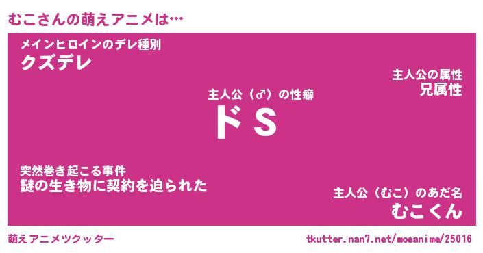 | 女子向けラノベタイトル風あだ名 | 『(仮)むこのやんごとなき事情』 |