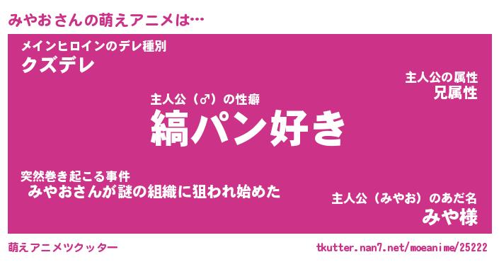 | 男性向けラノベタイトル風あだ名 | 『みやおの憂鬱』 |