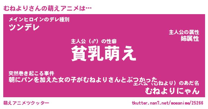 | 男性向けラノベタイトル風あだ名 | 『むねよりの憂鬱』 |