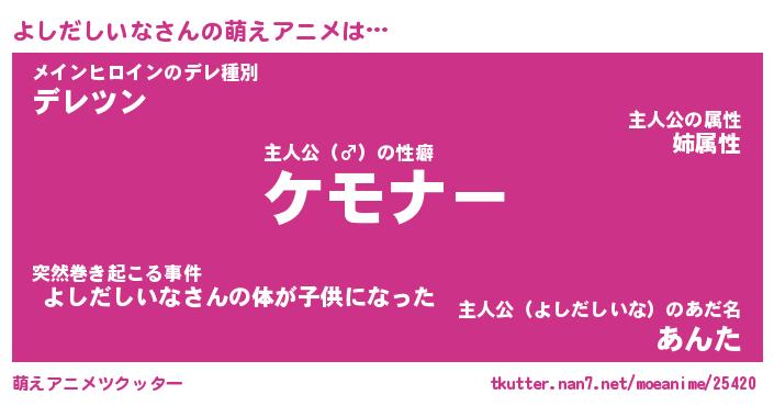 | 男性向けラノベタイトル風あだ名 | 『ヨシダシイナアートオンライン』 |