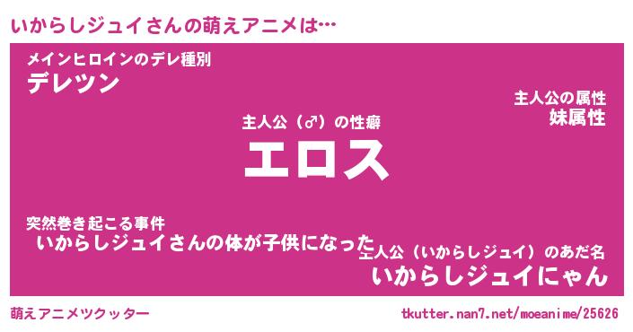 | 男性向けラノベタイトル風あだ名 | 『イカラシジュイアートオンライン』 |