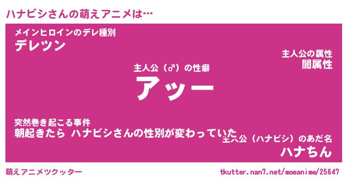| 男性向けラノベタイトル風あだ名 | 『ハナビシアートオンライン』 |