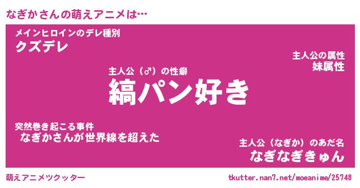 | 意味不明あだ名 | 『ペロリンなぎか』『なぎかフォーエバー』 |