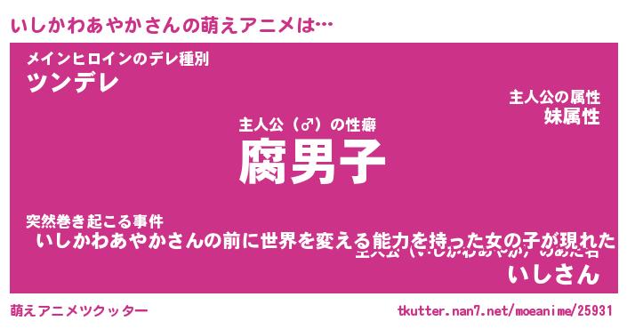 | 男性向けラノベタイトル風あだ名 | 『イシカワアヤカアートオンライン』 |