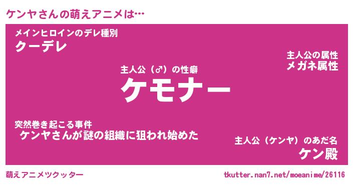 | 女子向けラノベタイトル風あだ名 | 『誰かこのケンヤを説明してください! ~契約から始まるウェディング~』 |