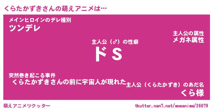 | 男性向けラノベタイトル風あだ名 | 『くらたかずきの憂鬱』 |