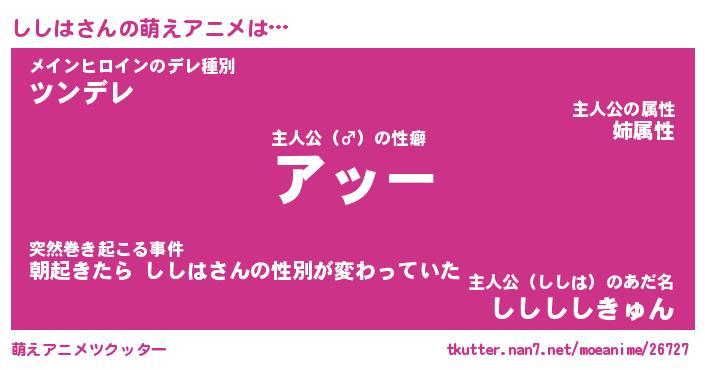 女子向けラノベタイトル風あだ名 | 『誰かこのししはを説明してください! ~契約から始まるウェディング~』 |