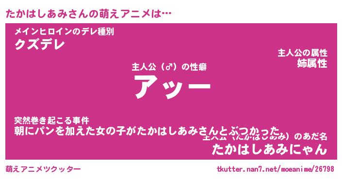 | ヘコむあだ名 | 『たかにゅー』『なまこ酢』 |