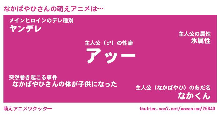 | 女子向けラノベタイトル風あだ名 | 『誰かこのなかばやひを説明してください! ~契約から始まるウェディング~』 |