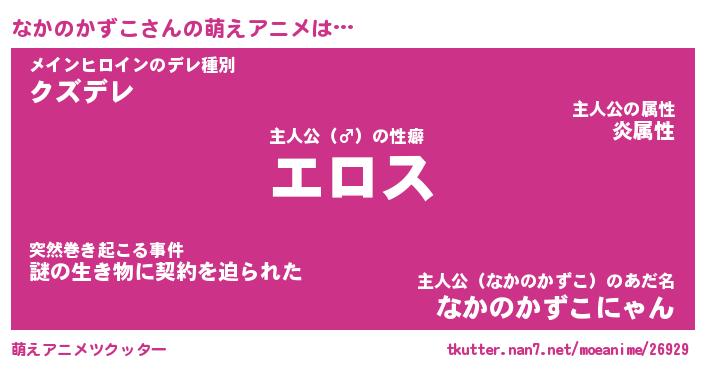 | 女子向けラノベタイトル風あだ名 | 『誰かこのなかのかずこを説明してください! ~契約から始まるウェディング~』 |