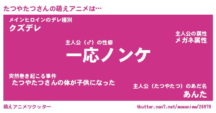 | 男性向けラノベタイトル風あだ名 | 『タツヤタツアートオンライン』 |