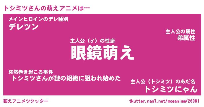 | 男性向けラノベタイトル風あだ名 | 『トシミツの憂鬱』 |