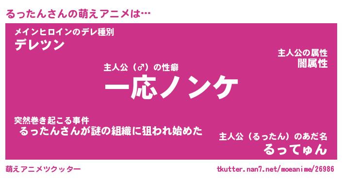 | 男性向けラノベタイトル風あだ名 | 『ルッタンアートオンライン』 |