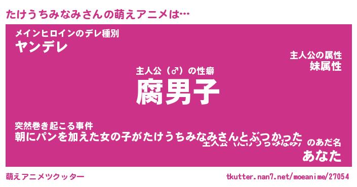 | 男性向けラノベタイトル風あだ名 | 『タケウチミナミアートオンライン』 |