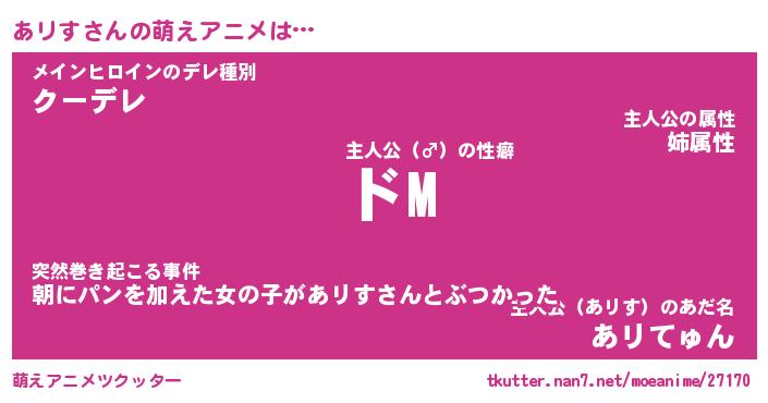 | ヘコむあだ名 | 『あリもー』『つくし』『あリぷりん』 |