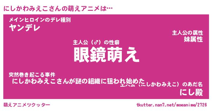 | 2回繰り返すあだ名 | 『にしにし』『ににしし』『ぬめぬめ』 |