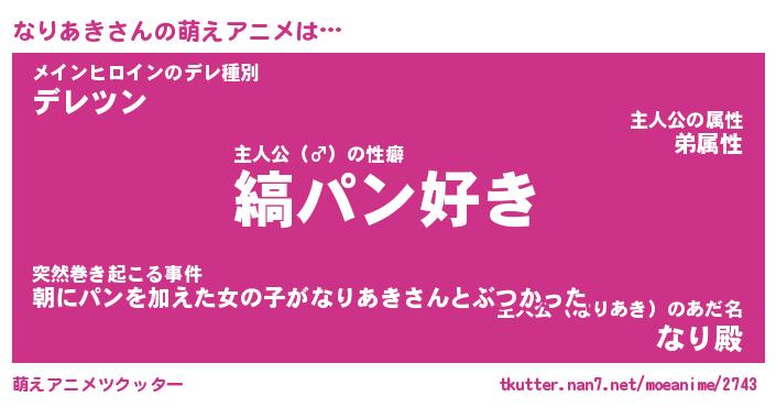 | 男性向けラノベタイトル風あだ名 | 『なりあきの憂鬱』 |