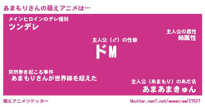 | 男性向けラノベタイトル風あだ名 | 『あまもりの憂鬱』 |