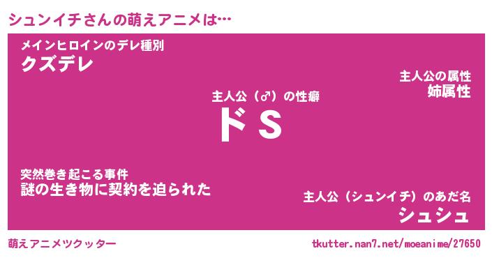 | 女子向けラノベタイトル風あだ名 | 『(仮)シュンイチのやんごとなき事情』 |