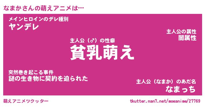 | 男性向けラノベタイトル風あだ名 | 『なまかの憂鬱』 |