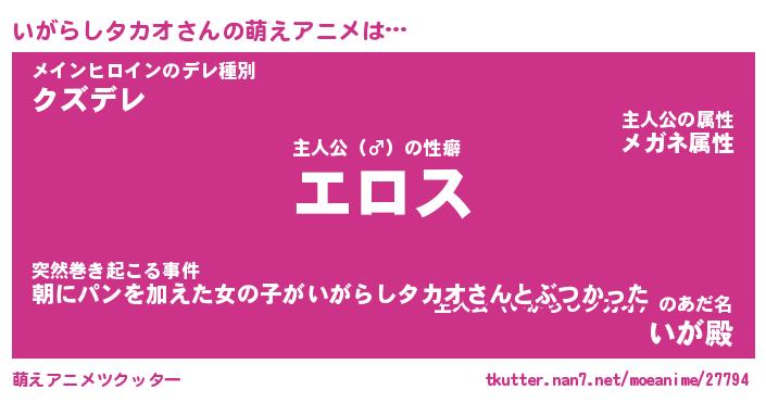 | 女子向けラノベタイトル風あだ名 | 『誰かこのいがらしタカオを説明してください! ~契約から始まるウェディング~』 |