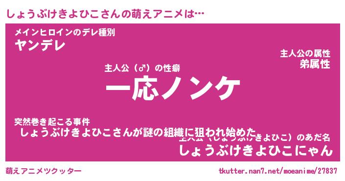 | 男性向けラノベタイトル風あだ名 | 『ショウブケキヨヒコアートオンライン』 |