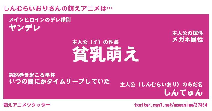 | 男性向けラノベタイトル風あだ名 | 『しんむらいおりの憂鬱』 |