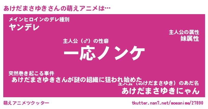 | 男性向けラノベタイトル風あだ名 | 『アケダマサユキアートオンライン』 |