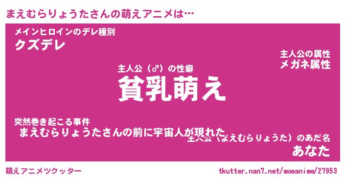 | 男性向けラノベタイトル風あだ名 | 『まえむらりょうたの憂鬱』 |