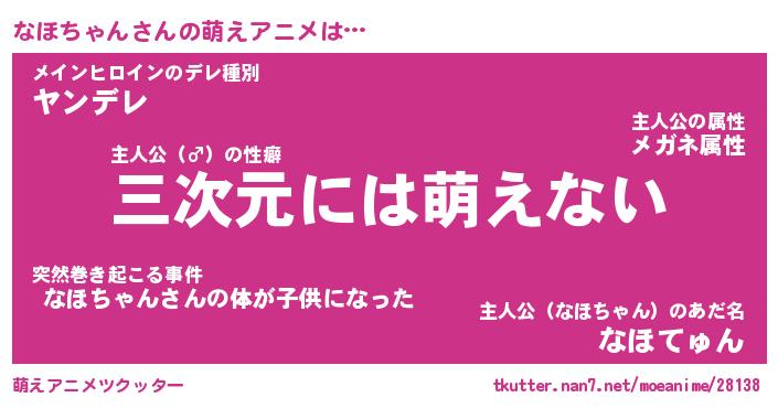 | 男性向けラノベタイトル風あだ名 | 『ナホチャンアートオンライン』 |