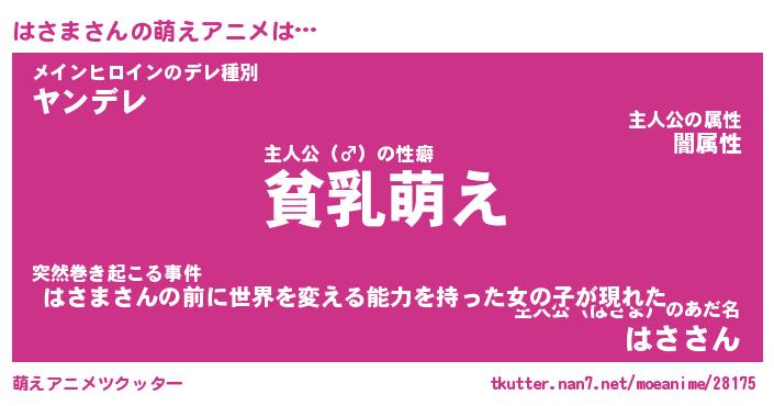 | 男性向けラノベタイトル風あだ名 | 『はさまの憂鬱』 |