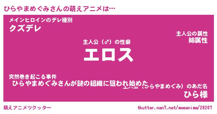 | 胡散臭い通販商品みたいなあだ名 | 『億万長者になれるブレスレット…その名も「ひらやまめぐみ」』 |