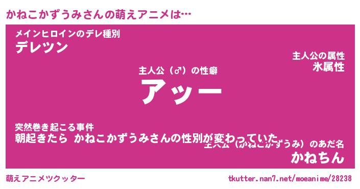 | 女子向けラノベタイトル風あだ名 | 『誰かこのかねこかずうみを説明してください! ~契約から始まるウェディング~』 |