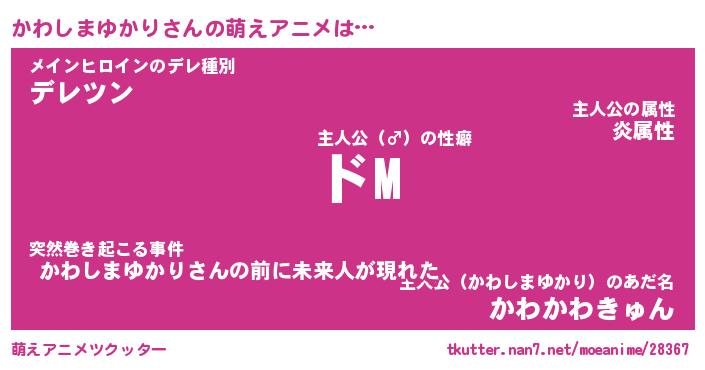 | 男性向けラノベタイトル風あだ名 | 『かわしまゆかりの憂鬱』 |