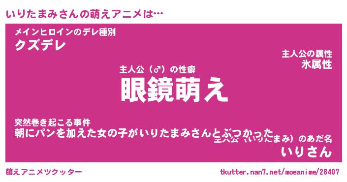 | 男性向けラノベタイトル風あだ名 | 『いりたまみの憂鬱』 |