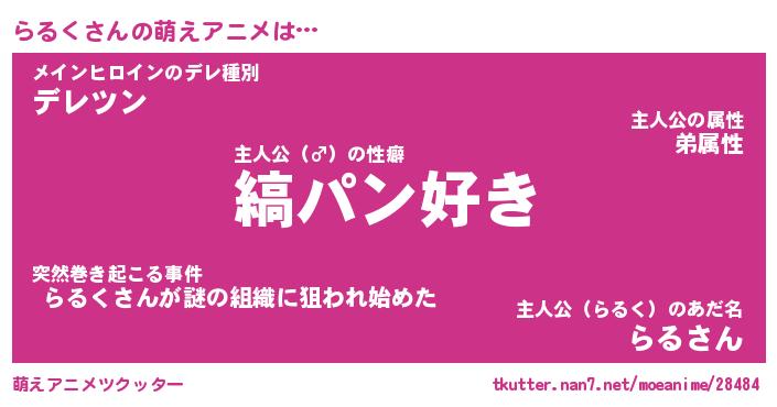| 男性向けラノベタイトル風あだ名 | 『らるくの憂鬱』 |