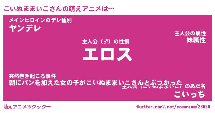 | 男性向けラノベタイトル風あだ名 | 『コイヌママイコアートオンライン』 |