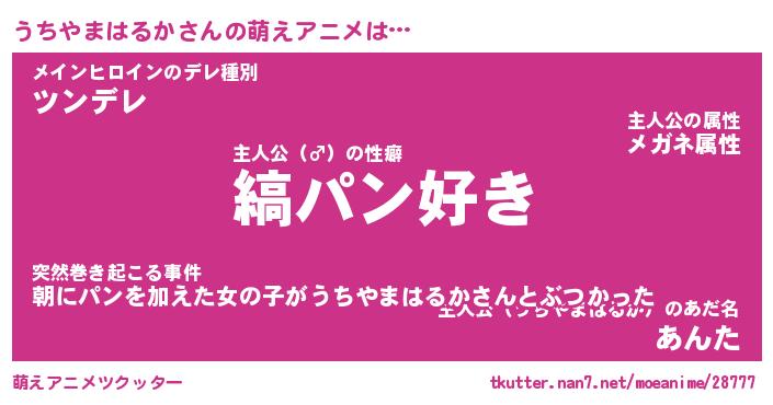 | 男性向けラノベタイトル風あだ名 | 『うちやまはるかの憂鬱』 |